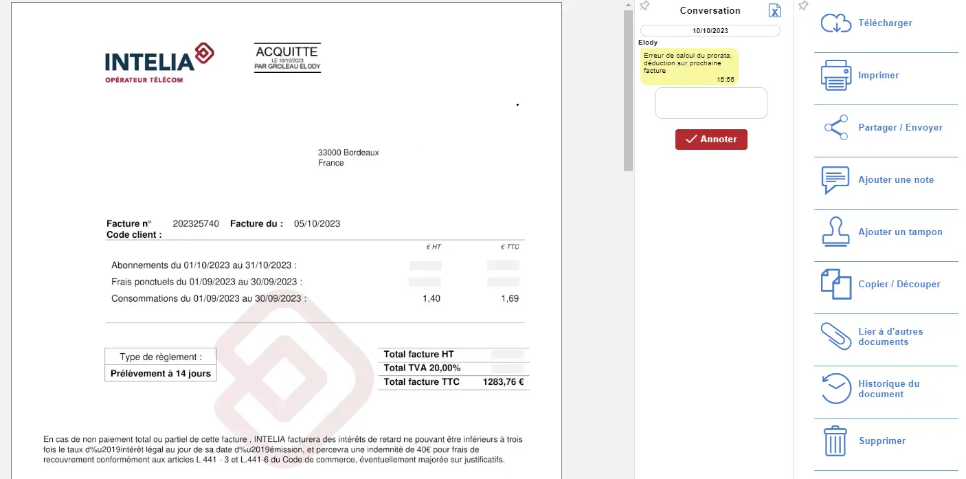 Les outils collaboratifs intégrés (tchat documentaire, post-it) permettent à votre équipe de communiquer directement sur les documents. Jusqu'à 9 utilisateurs peuvent accéder à votre espace Nano by Zeendoc.